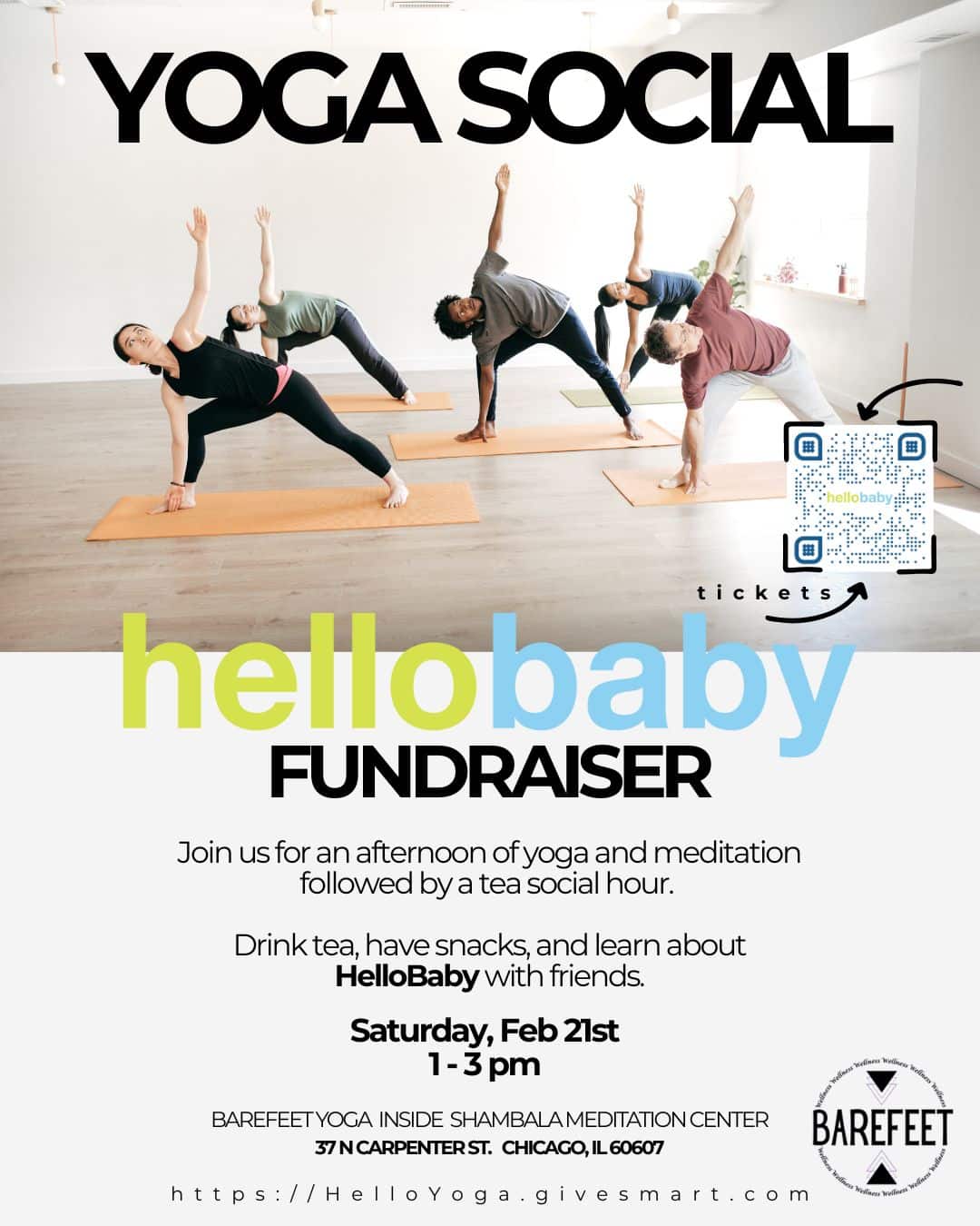 On Saturday, February 21st from 1–3 pm, we’re hosting a Yoga Social Fundraiser at Barefeet Yoga inside Shambala Meditation Center (37 N Carpenter St., Chicago).